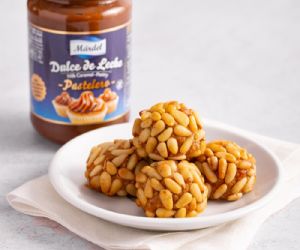 • Panellets con dulce de leche. Cada año en Cataluña se espera con ganas la Castañada, celebración vinculada al día de Todos los Santos. Un momento en el que familiares y amigos se reúnen para compartir estos duces. Este año, prueba a darle un toque extra a esta tradición: rellenando con dulce de leche las bolitas hechas con almendra molida, azúcar y huevo, se consigue un interior suave y cremoso que se derrite en la boca. Rebozados en piñones y recubiertos parcialmente con una fina capa de chocolate negro, se convertirán en un bocado único, crujiente, y lleno de contrastes.